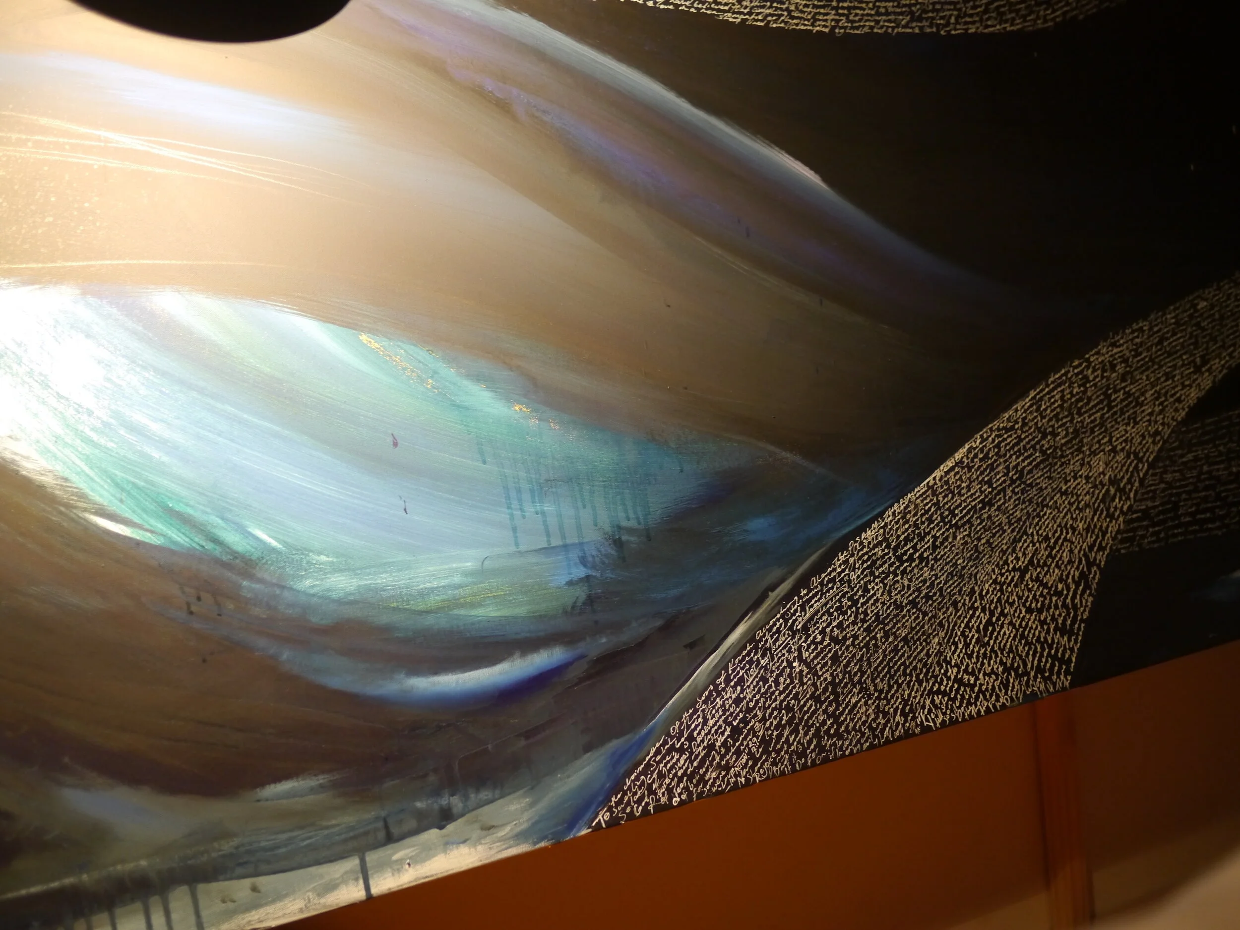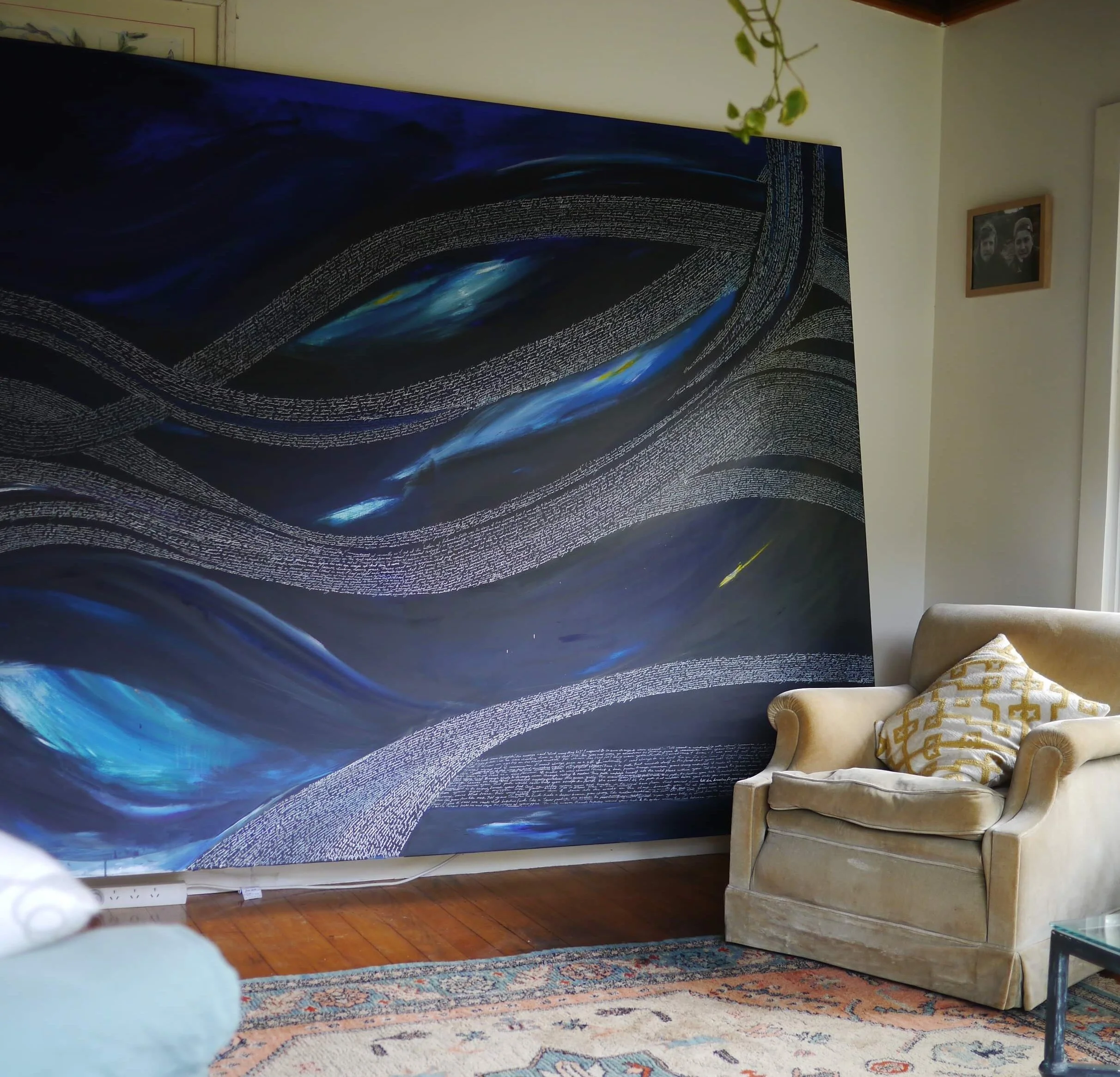 One of the 2.4m canvases. It is covered in stories of people, of dreams, of poetry, of psalms, of conversation.