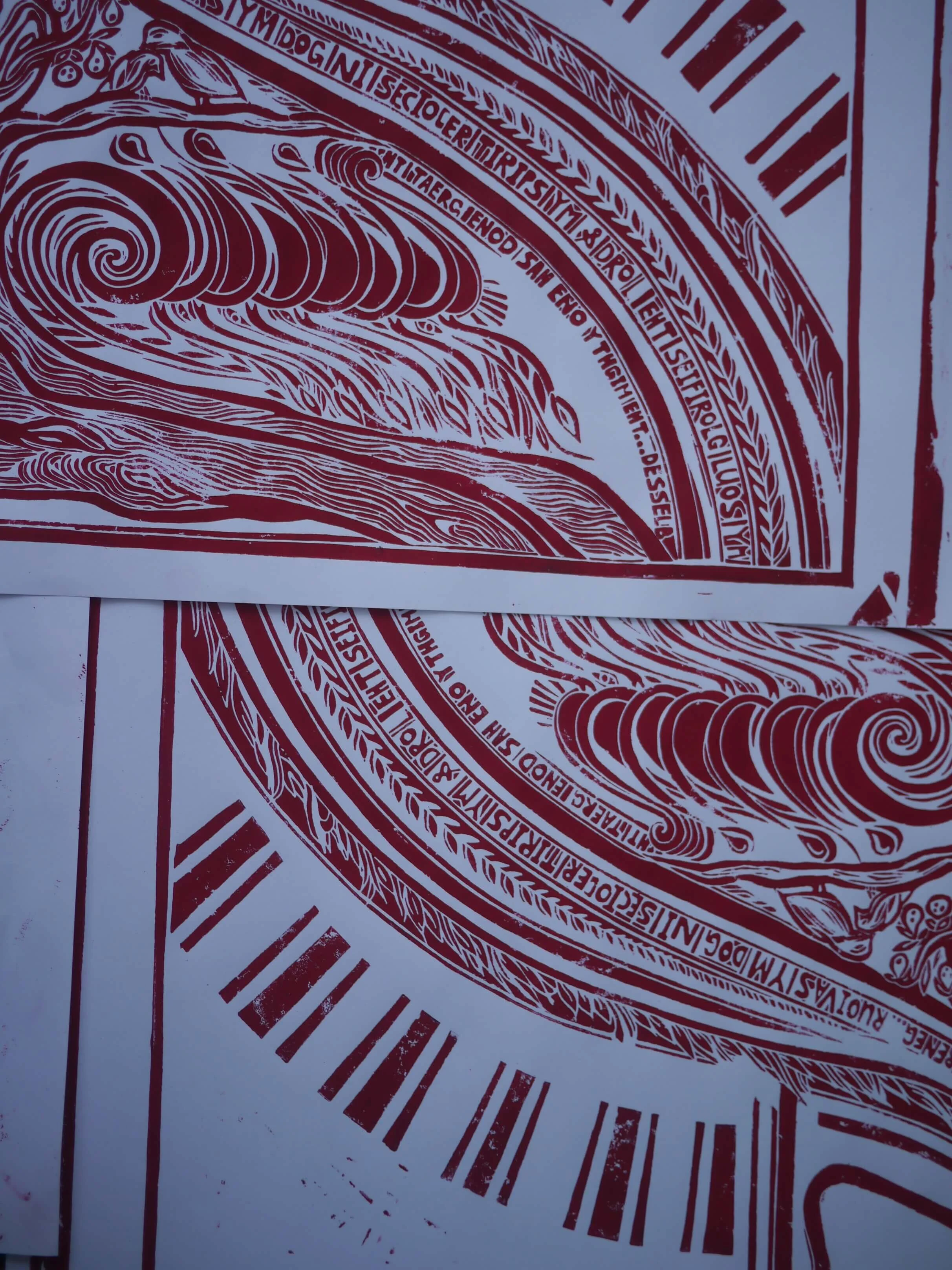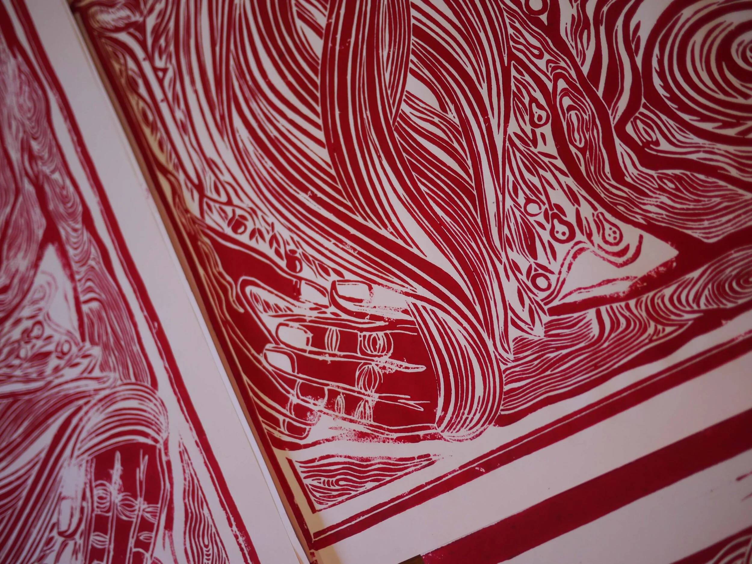 I embarked on a lino pilgrimage in my dining room, carving portraits under a light bulb into the wee hours. Lino is a short word for “linoleum printing”, which takes the concept of ancient Japanese woodblock printing techniques and applies them to a more readily available and softer material - linoleum. Yes, the plastic sheeting that may still line your grandma’s kitchen floor. Admittedly, it currently lines my bathroom floor in faux black and white tiles. I invested in a set of fancy, swiss-made, wood carving tools and began carving blocks of lino with intricate stories of people - reimagining their identities visually. I can’t recall how or why I decided to go to the art shop one day and buy some lino but nevertheless I had found myself in a rather niche corner of the world.